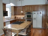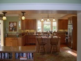 Reconfiguration of an existing kitchen and ceiling and lighting changes give space updated character
