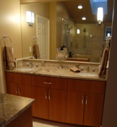 An existing bathroom reconfigured, with fine cabinetry, elegant surfaces and a Japanese soaking tub